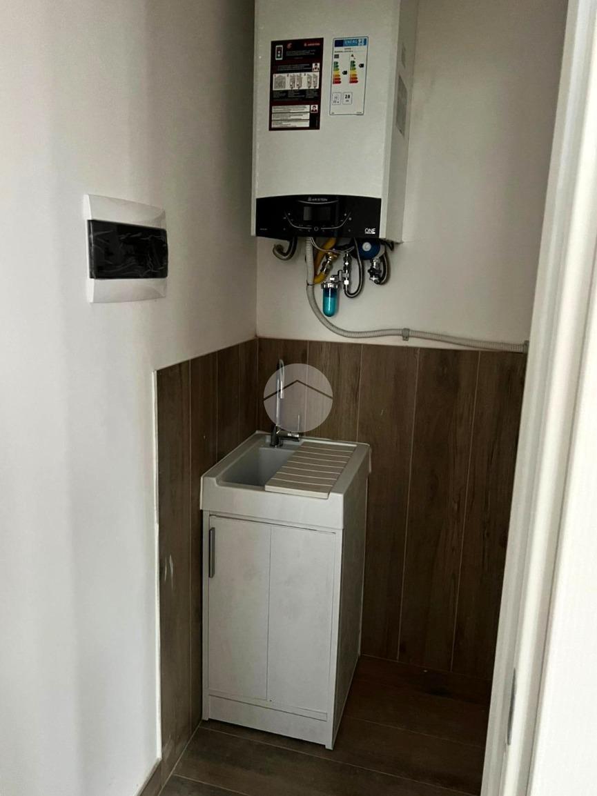 La soluzione si sviluppa con ingresso tramite portoncino blindato con cilindro anti-bulgaro europeo direttamente sul soggiorno con cucinino finestrato e lavanderia.