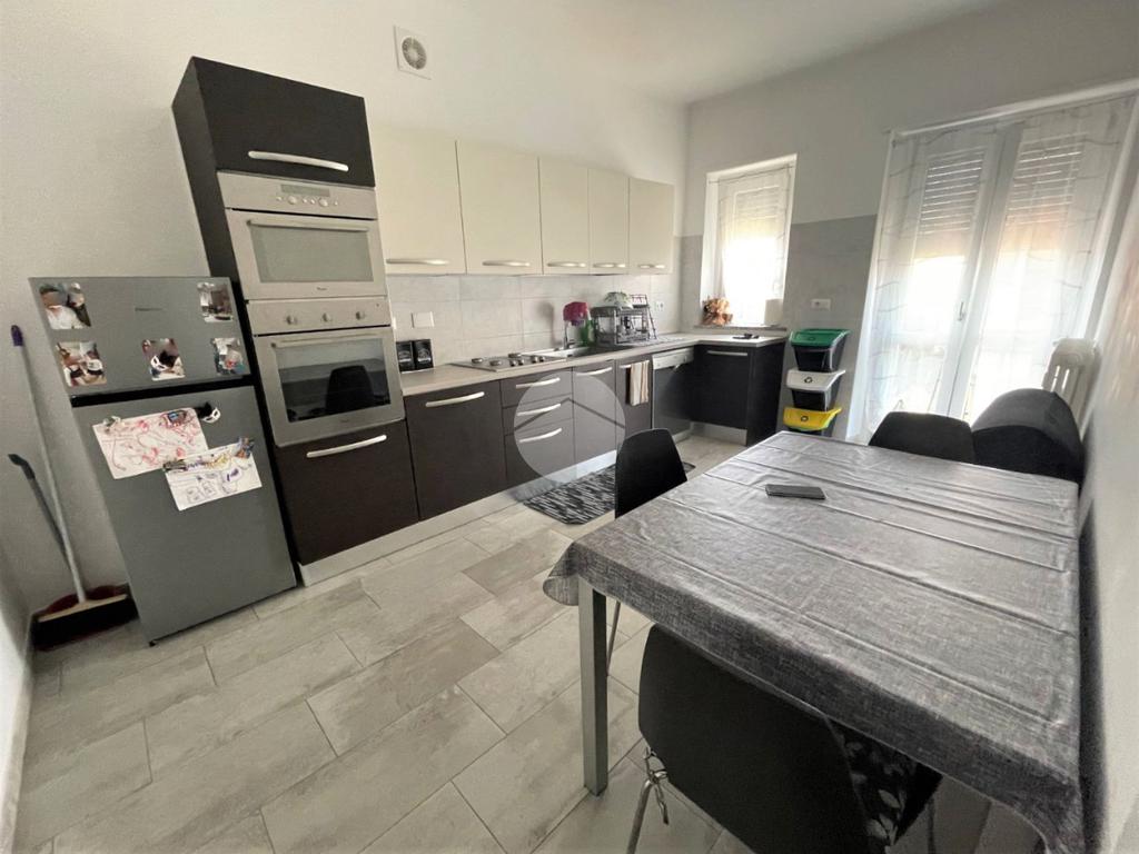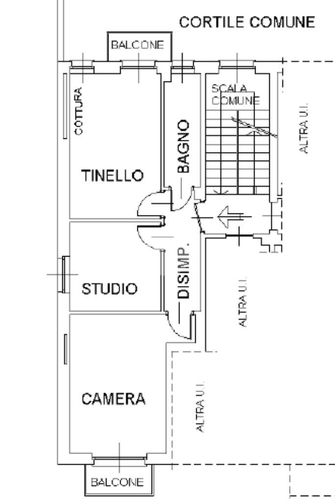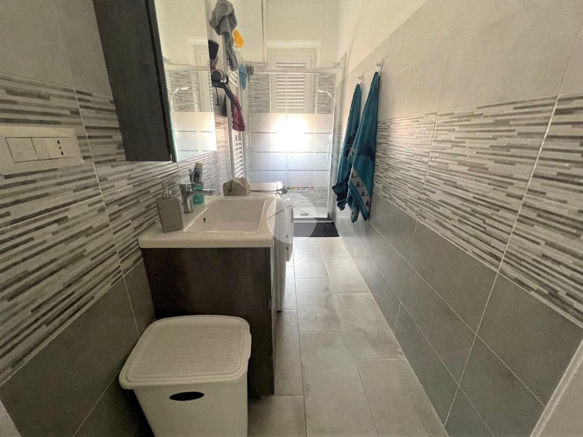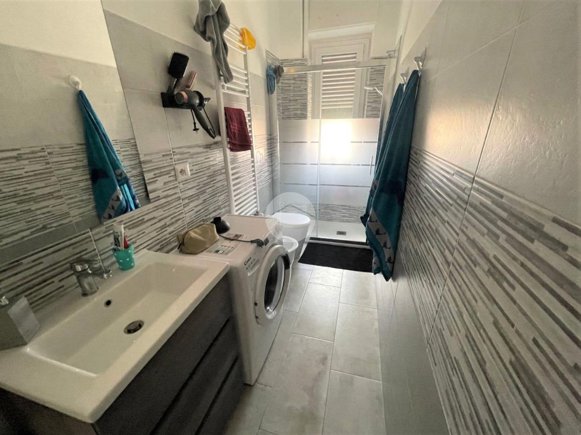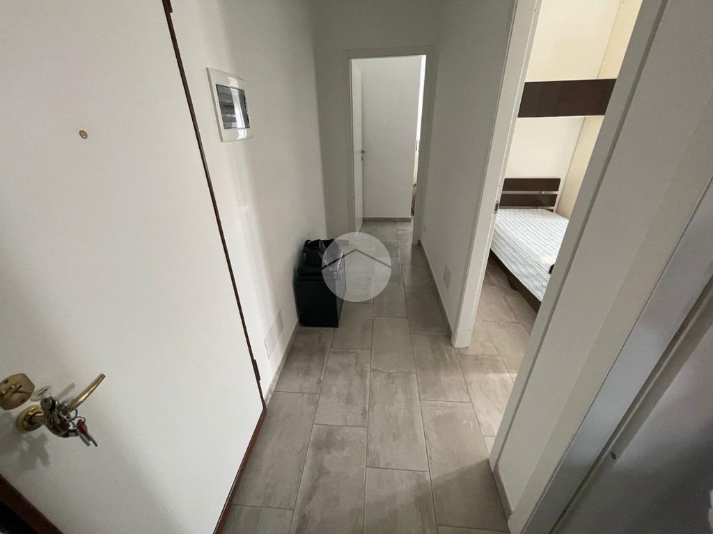 L'appartamento si compone di un ingresso da porta blindata su disimpegno, un soggiorno living con parete cottura e primo balcone, due camere di cui quella matrimoniale con accesso al secondo balcone e un bagno finestrato con doccia e attacco per la lavatrice.