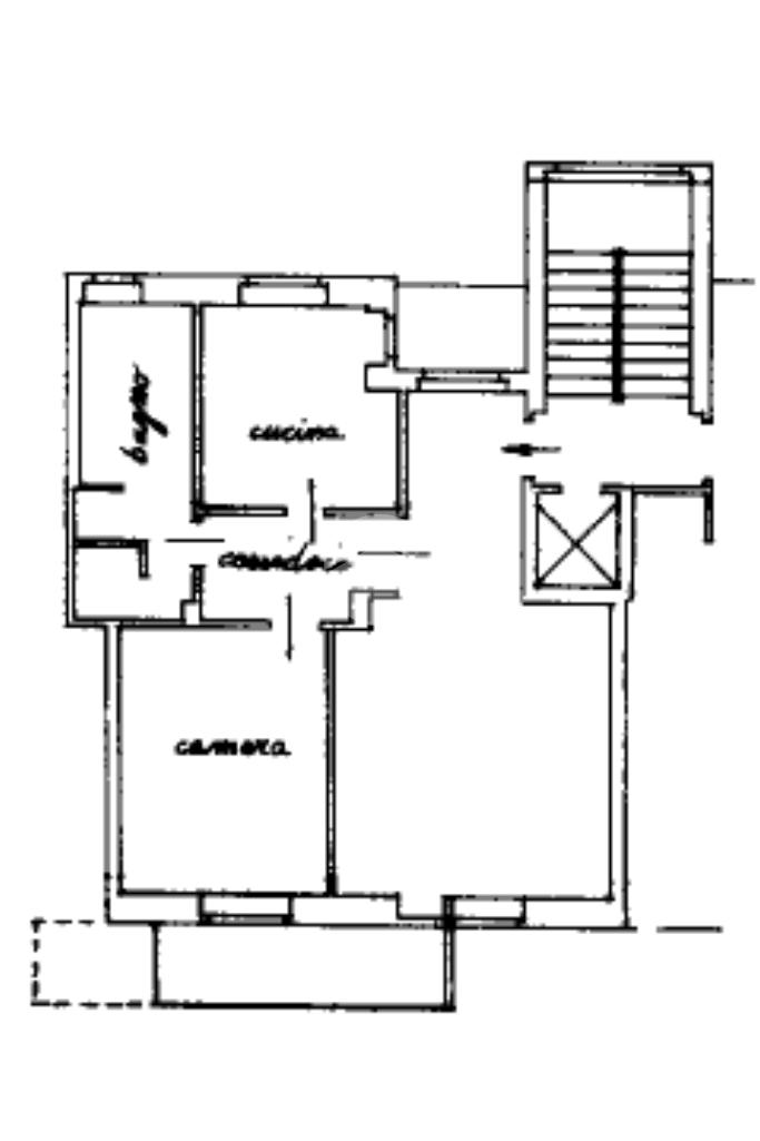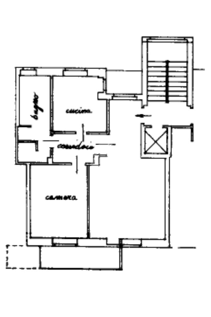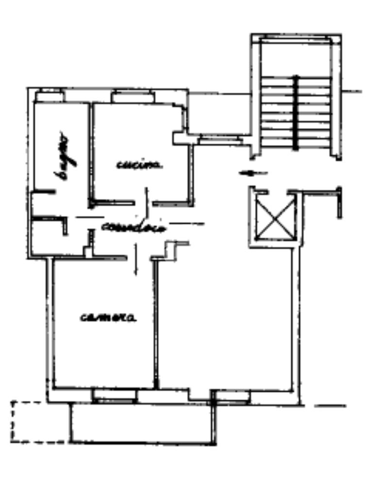 L'ingresso è diretto sul disimpegno che divide le due camere matrimoniali, il bagno e la cucina.