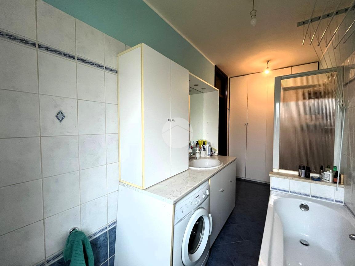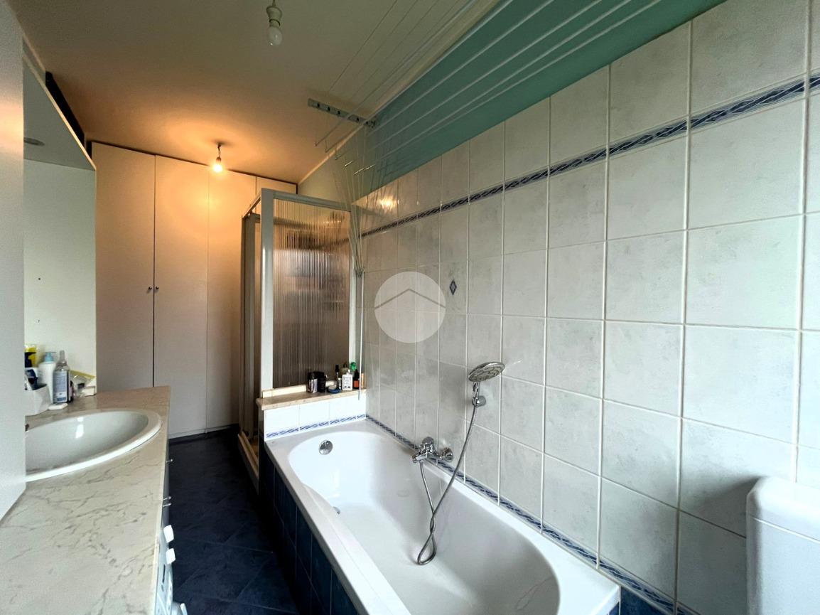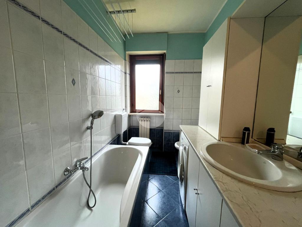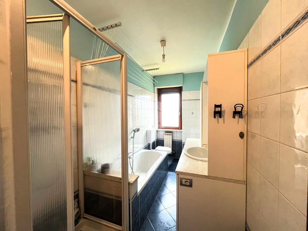 Il bagno è finestrato, accessoriato di box doccia e vasca.