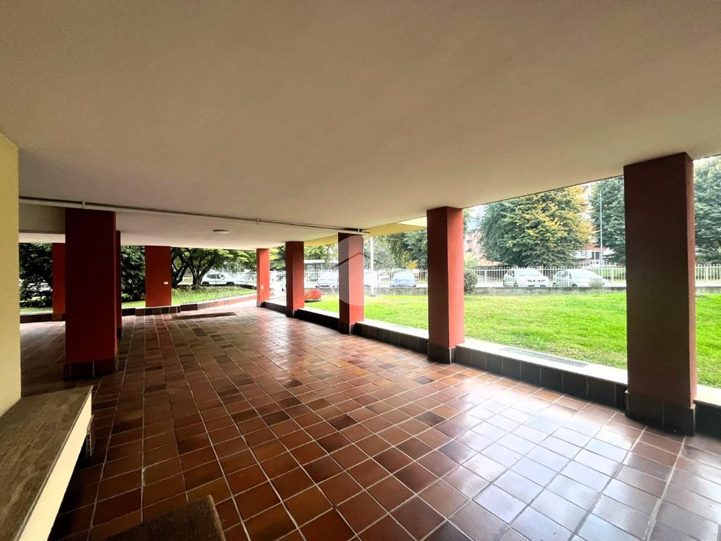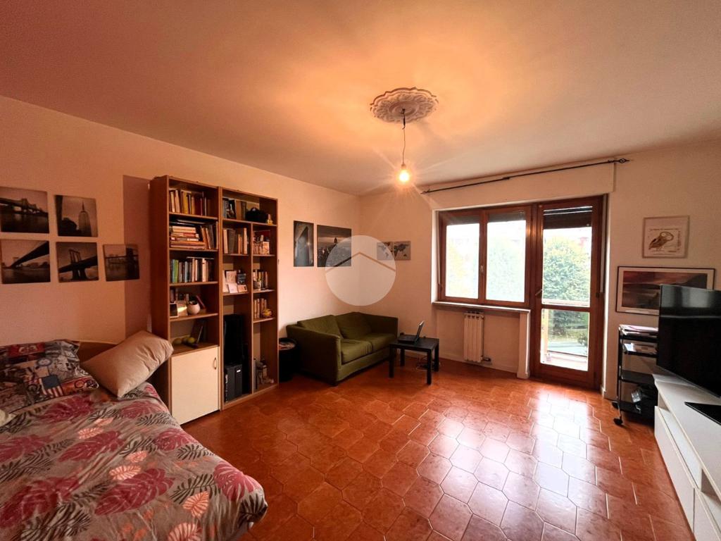 Le due camere sono entrambe luminose e di ampia metratura, in una di queste troviamo un balcone che affaccia sul giardino condominiale anteriore e sulla strada principale.