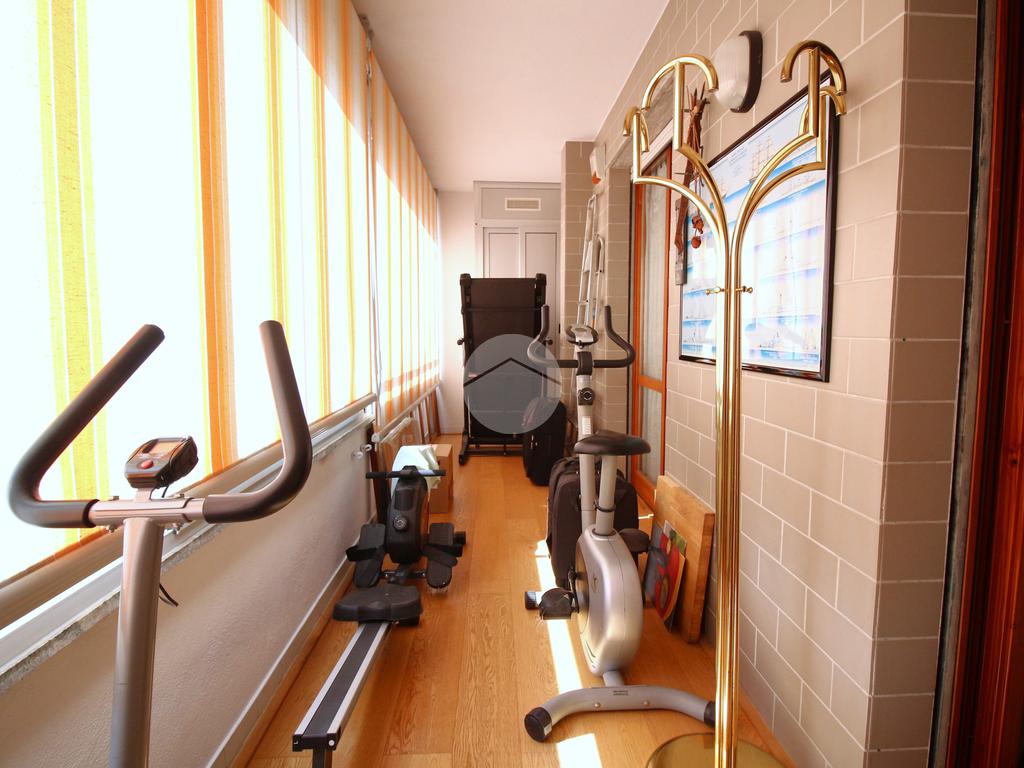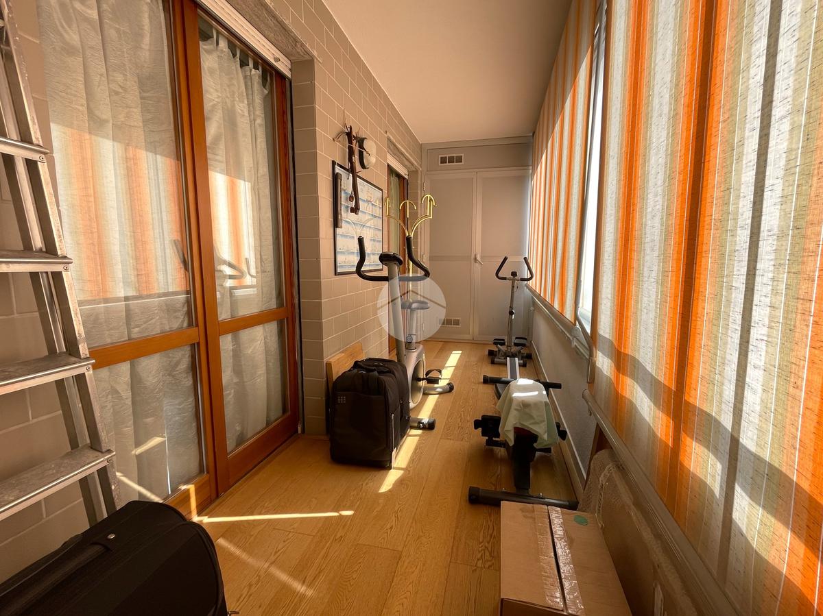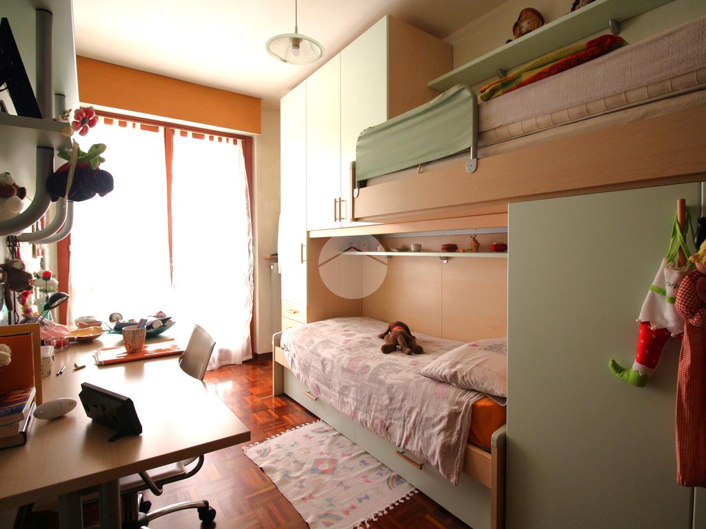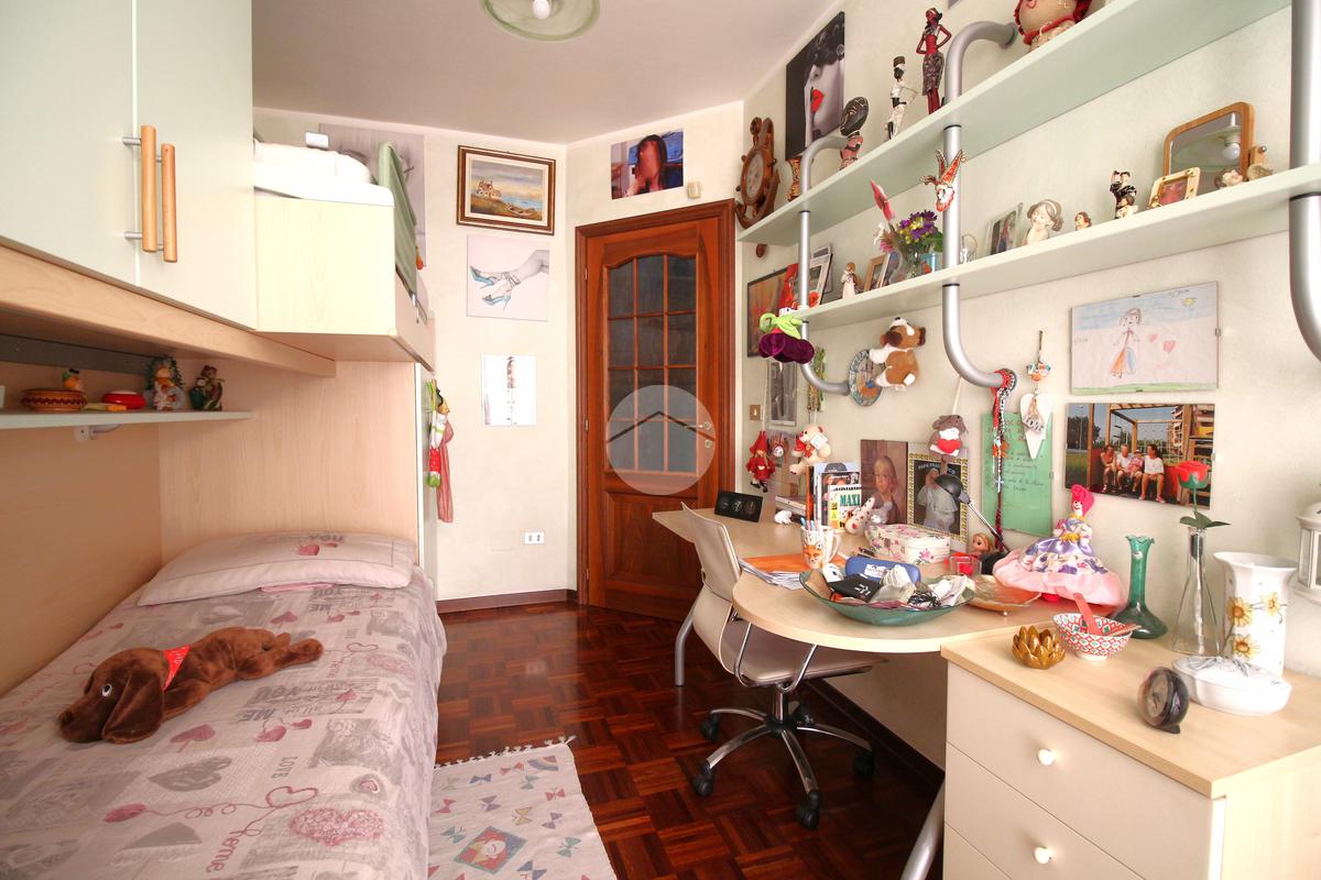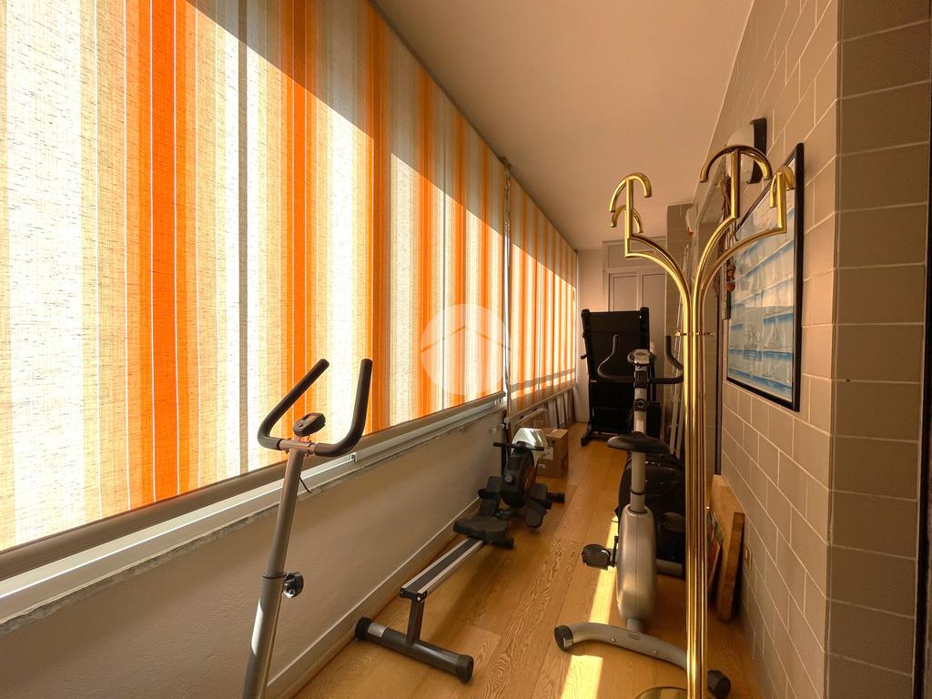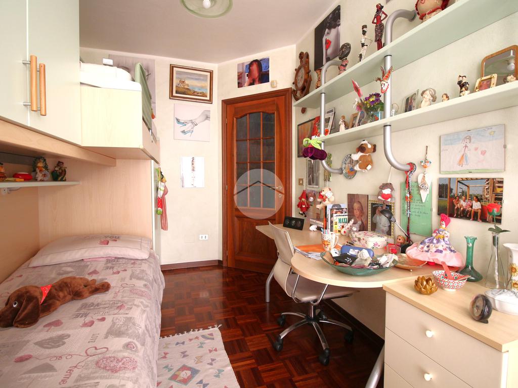 La zona notte si compone di un disimpegno, antibagno e bagno finestrato con doccia e attacco lavatrice, una camera matrimoniale, un secondo disimpegno con pavimentazione in parquet, un comodo ripostiglio, un secondo bagno con box doccia idromassaggiante e altre due camere da letto, anch’esse rifinite in parquet, con accesso a un terrazzo verandato che dona luminosità e privacy.