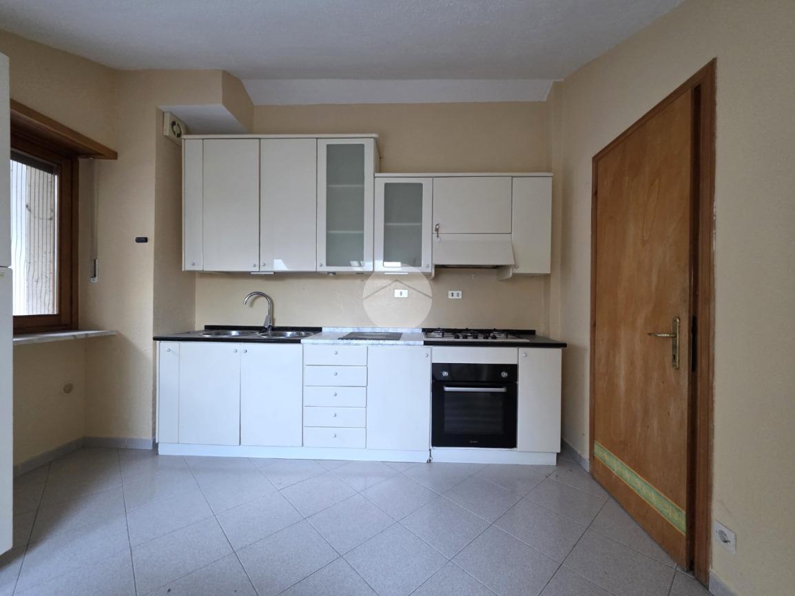 L'ingresso è diretto sul soggiorno con porta finestra a condurre al balcone e la cucina è abitabile con parete cottura lineare.