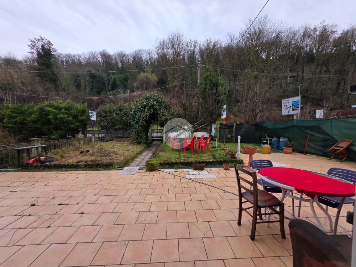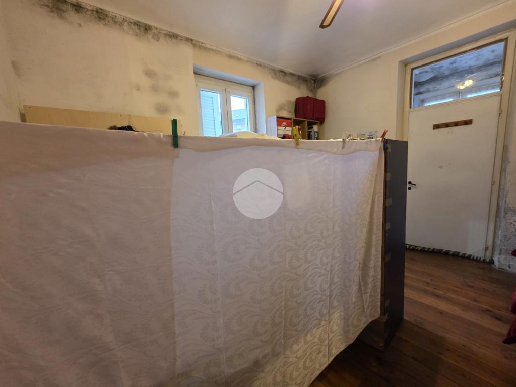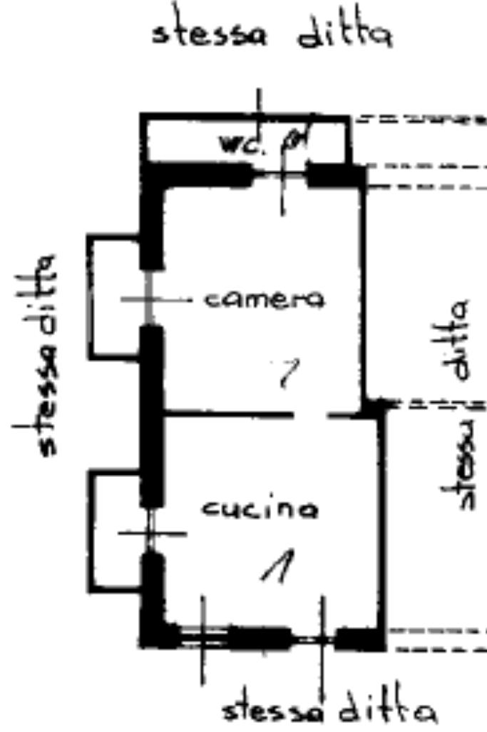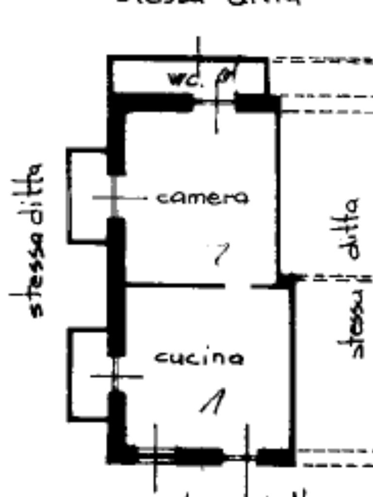 L'ingresso dalla porzione di cortile e giardino è diretto sulla zona giorno con parete cottura, quest'ultimo raggiungibile anche dalla scala condominiale.