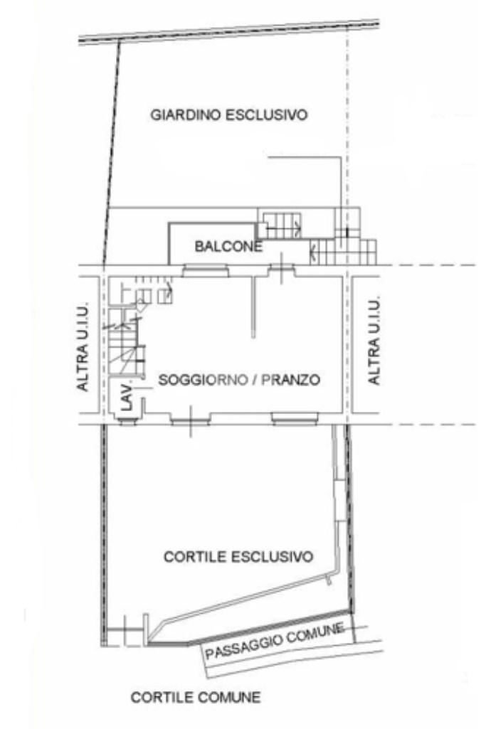L'ingresso dall'ampio cortile privato, tramite porta blindata con cilindro EU è diretto sull'ampio soggiorno living, illuminato da una finestra doppia.