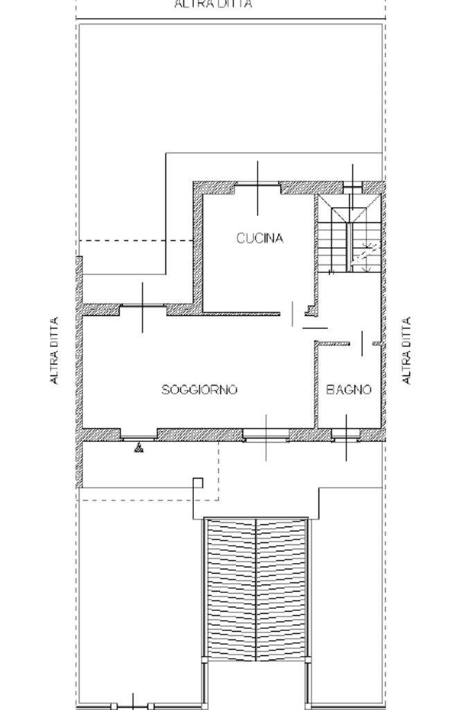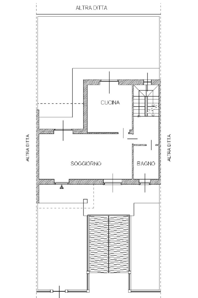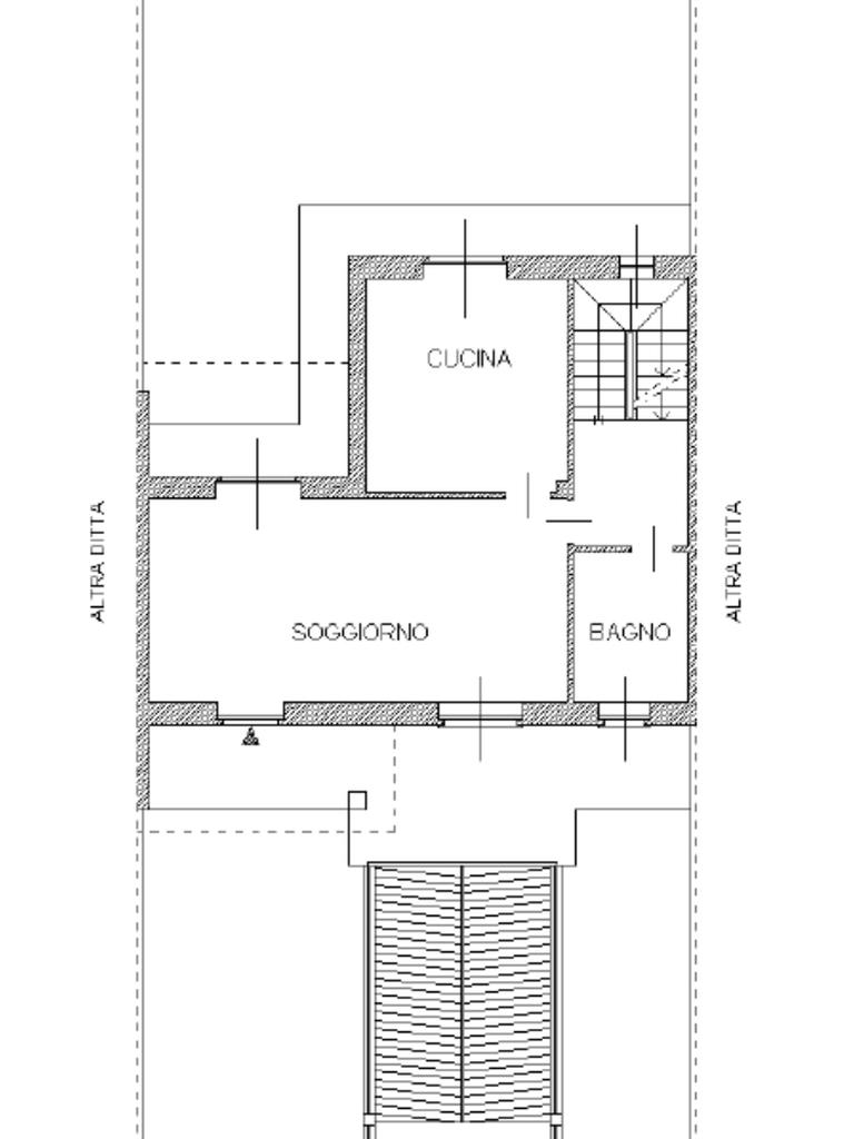 Completano il piano un bagno finestrato con vasca in muratura e inferriate di sicurezza su tutte le aperture.