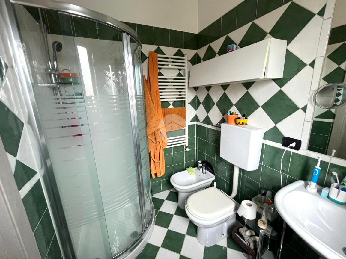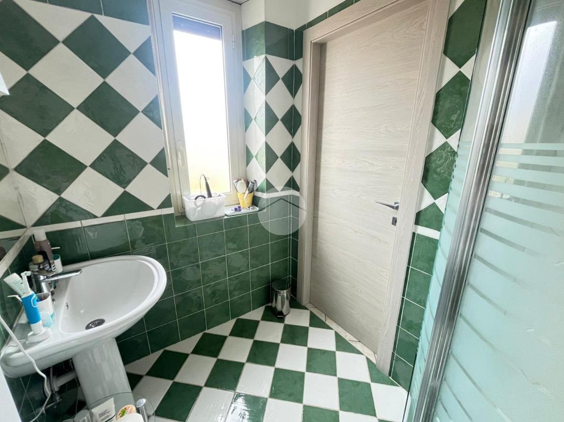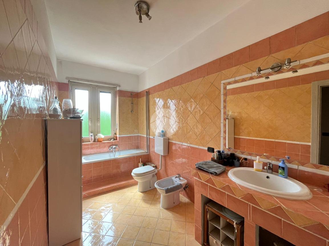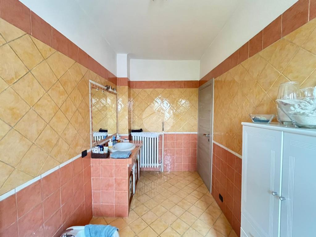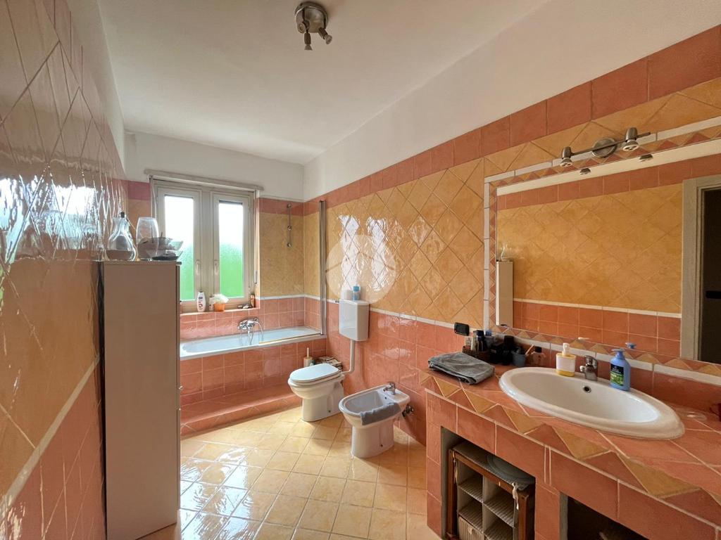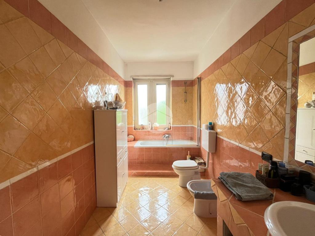 Il bagno principale anch'esso finestrato è completo di vasca e lavandino in