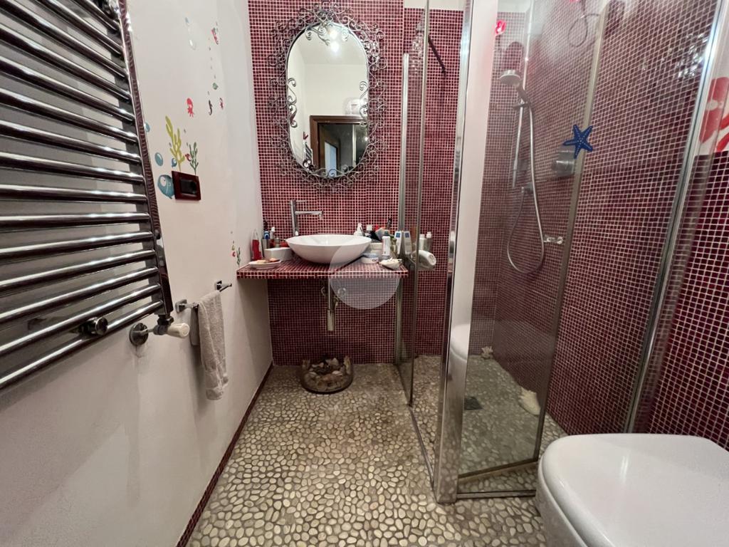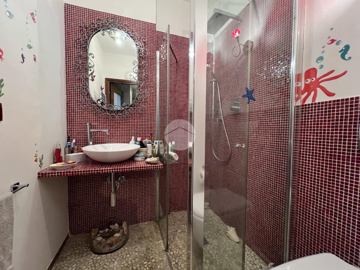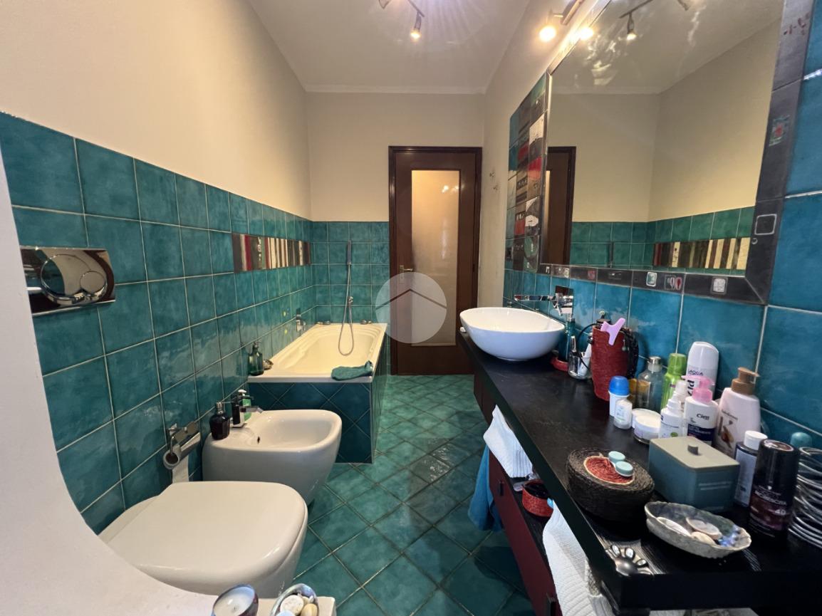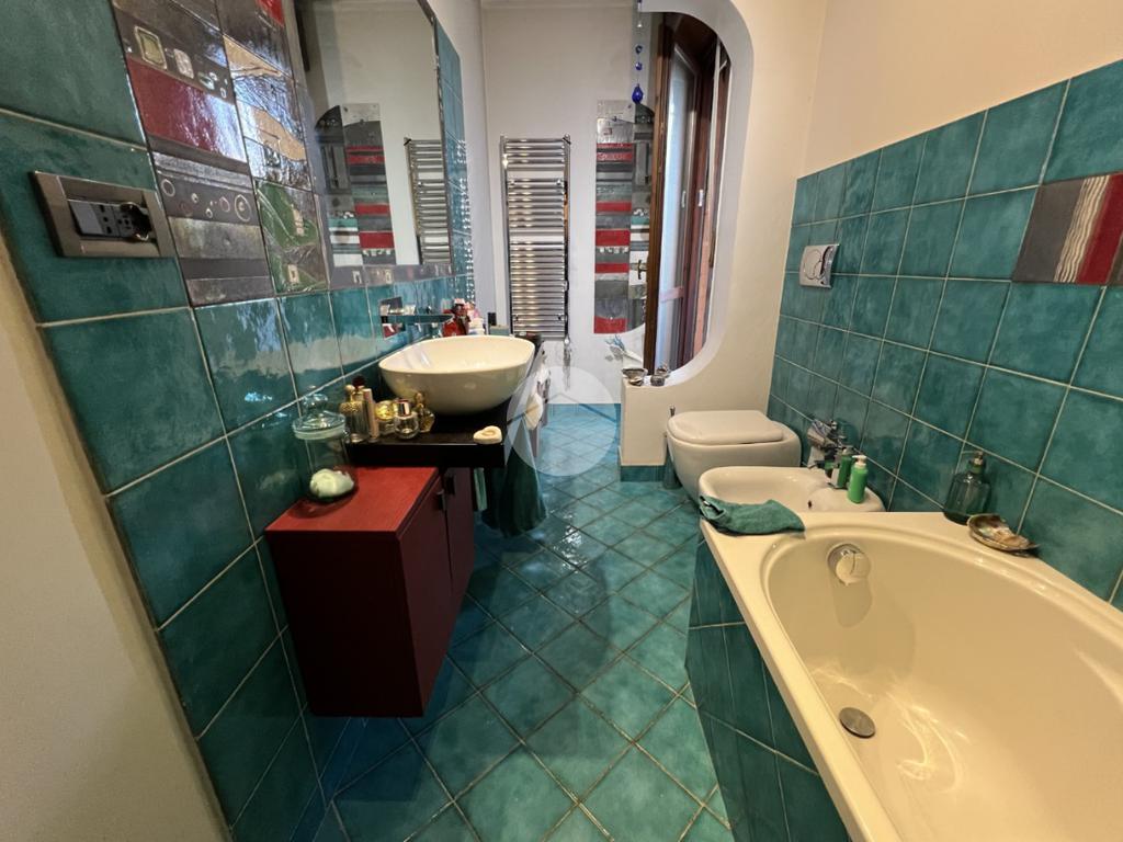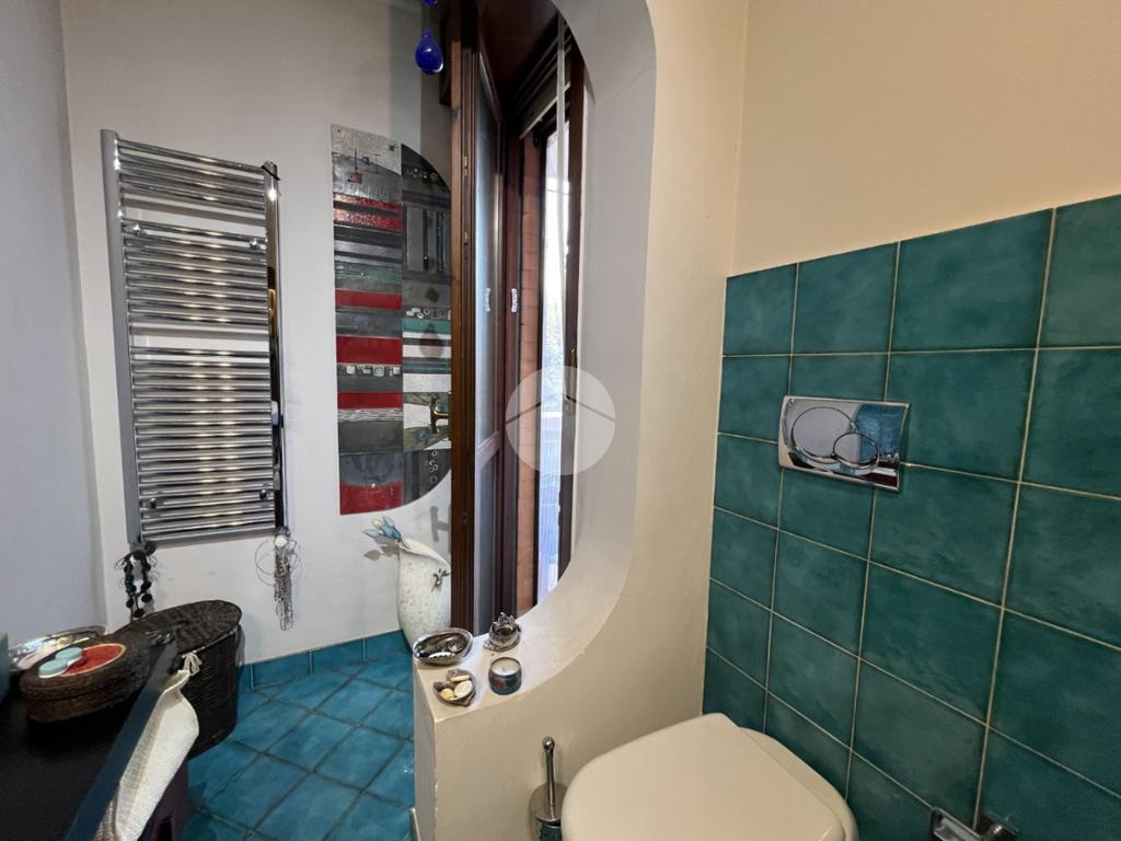 La soluzione dispone di due bagni, uno con accesso al balcone e il secondo cieco con ventilazione forzata.