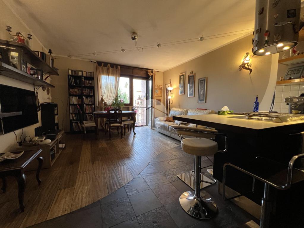 Il soggiorno doppio con angolo cottura risulta luminoso grazie alla porta finestra con primo accesso al terrazzino.