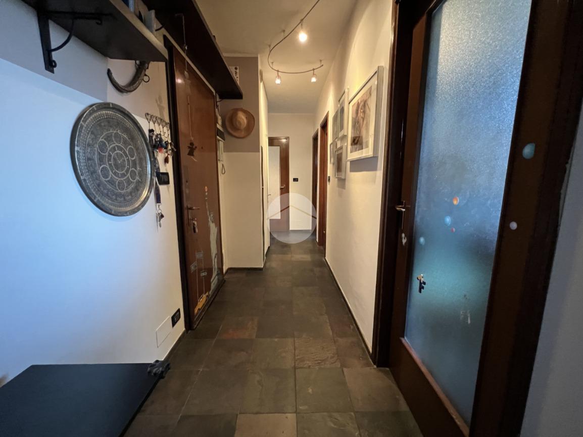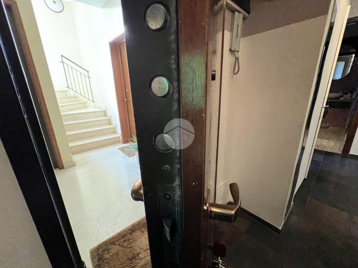 La soluzione si sviluppa con ingresso su disimpegno tramite porta blindata con cilindro antibulgaro europeo.