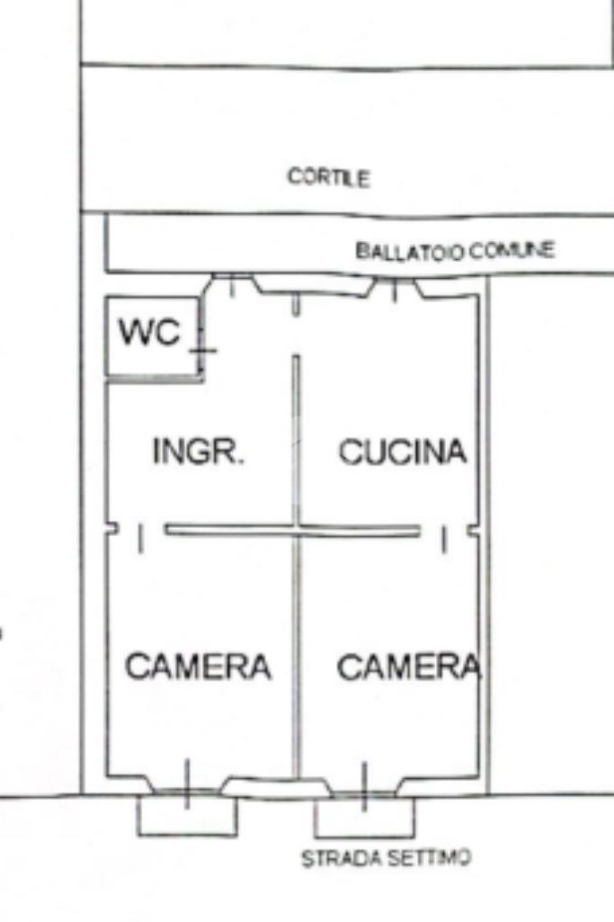 L’ingresso, su ballatoio, conduce alla cucina abitabile. Il disimpegno conduce alle due camere da letto matrimoniali entrambe dotate di balcone e al bagno con box doccia.