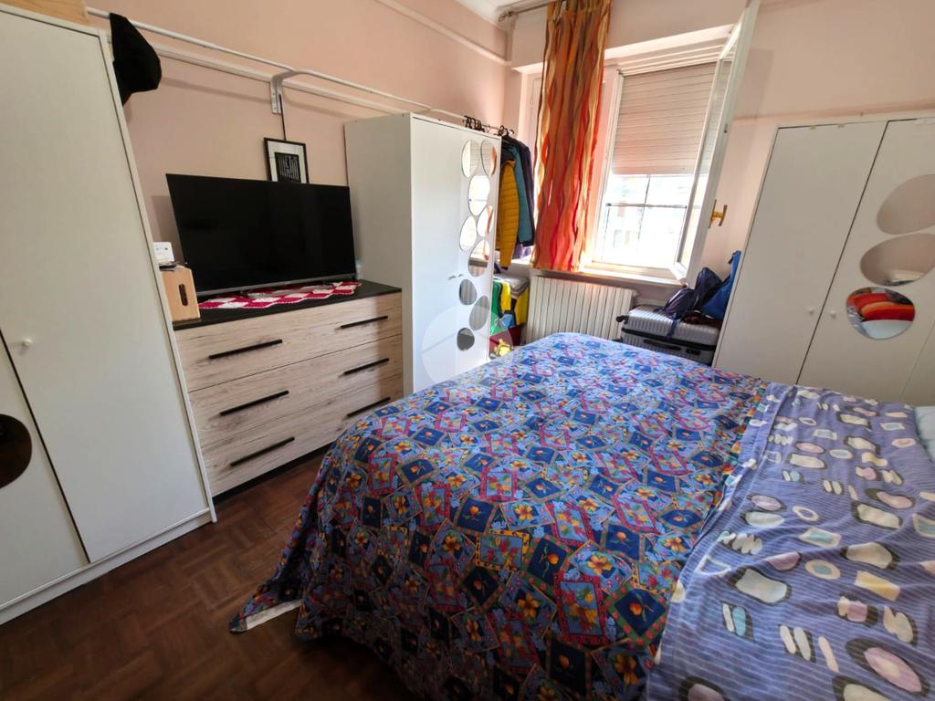 Tramite il disimpegno accediamo al bagno finestrato con vasca in muratura e alla zona notte, composta dalla camera da letto matrimoniale doppia con finestra.