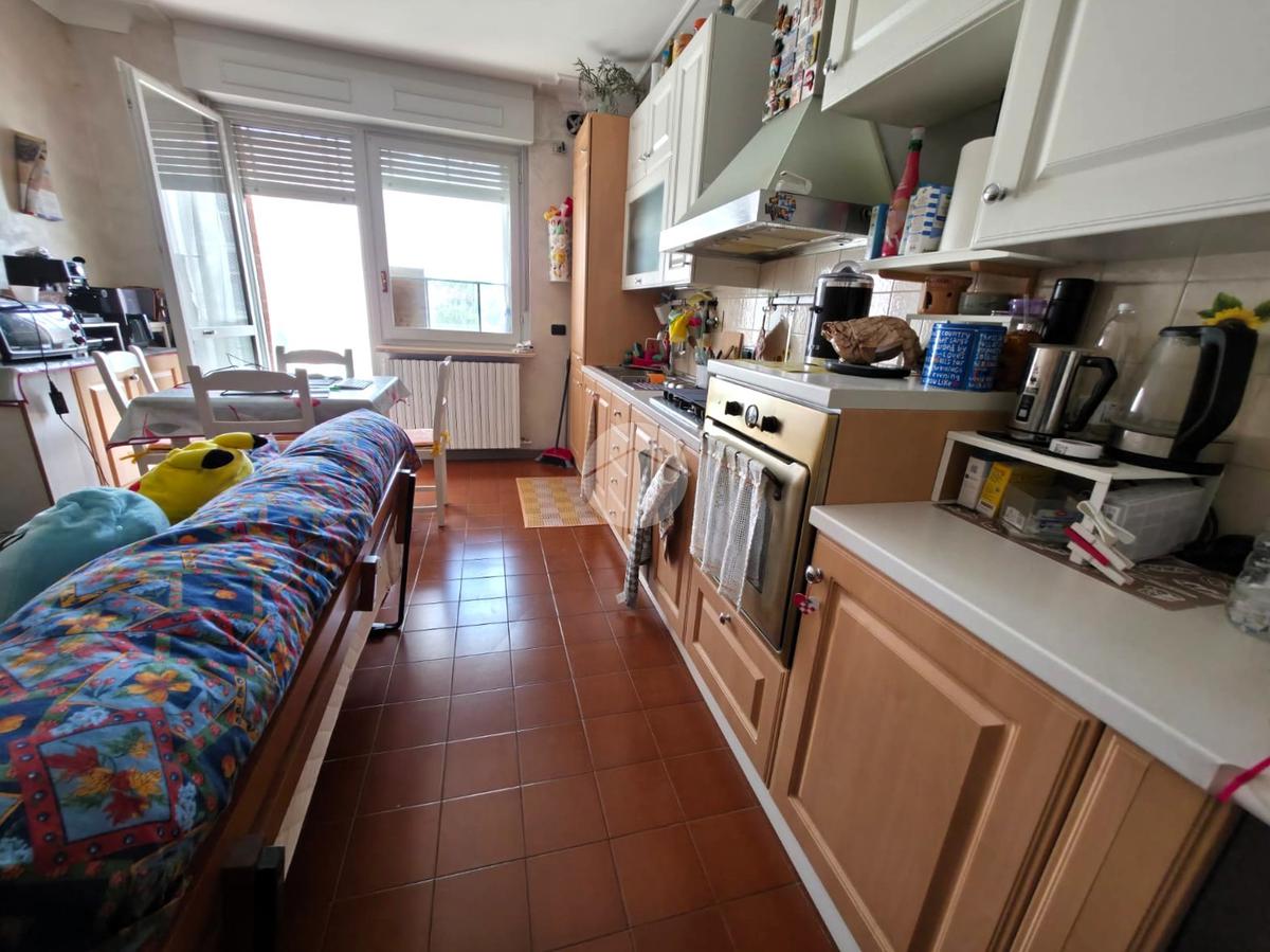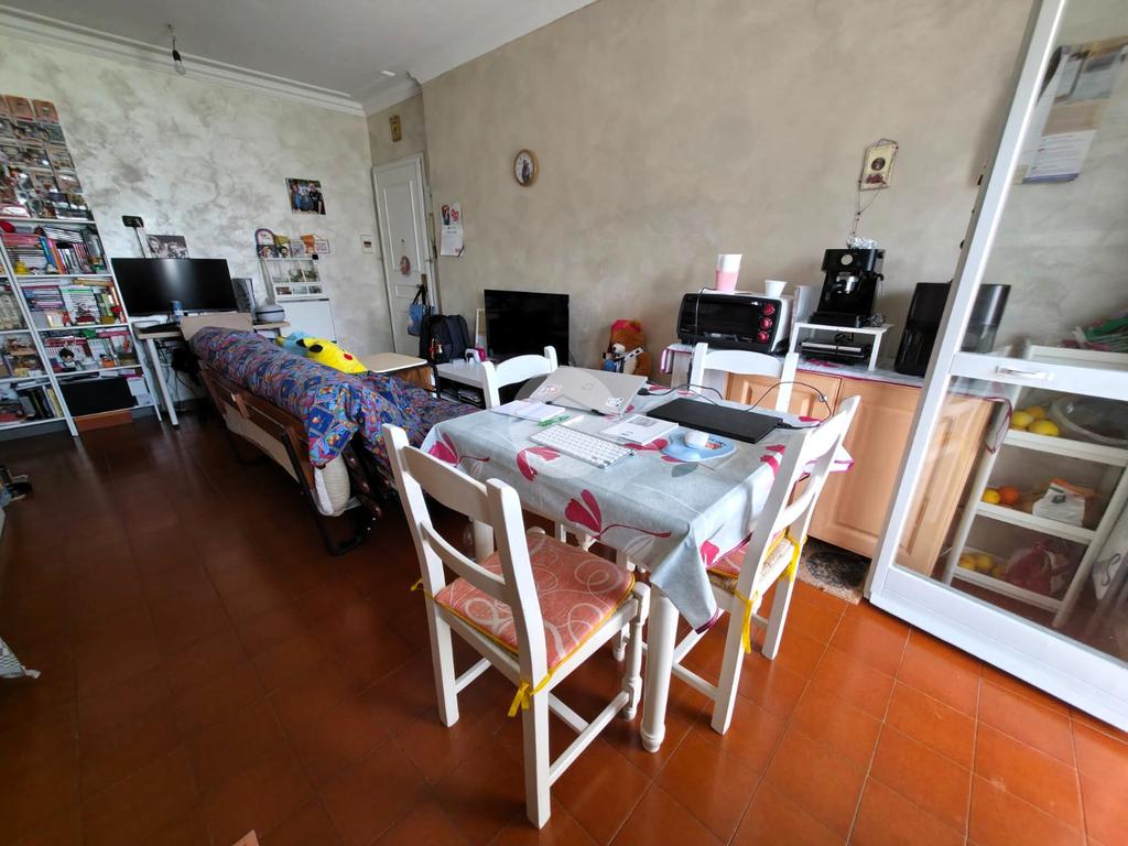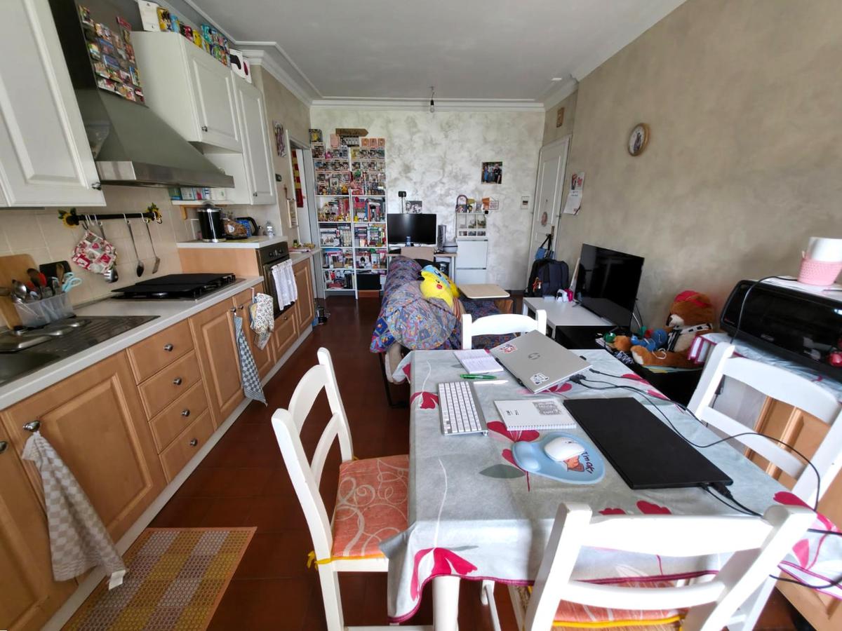 La soluzione si sviluppa con ingresso tramite porta blindata che da direttamente sul soggiorno con cucina a vista, la zona giorno risulta molto luminosa grazie alla porta finestra che conduce all'ampio balcone.